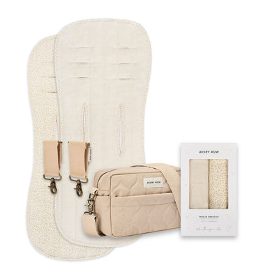 Pram Organiser Bag and Pram Clips - Latte