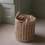 Our set of 3 Maize Baskets offers the perfect storage solution for every stage of your little one’s growth. Ideal for organising nursery essentials like swaddles, nappies, and creams, they also make stylish storage for blankets, bedding, books, toys, and even laundry as your child grows. Keep your home neat and clutter-free whilst looking beautiful. Crafted from natural maize, each basket features a charming striped design in three colours: natural, blue, and rust.