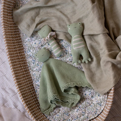Our Cuddle Cloths are made from super soft organic cotton, organic dyes and recycled polyester filling, ensuring they are gentle on your baby's delicate skin. What sets these baby comfort toys apart is the adorable character designs and beautifully soft knitted cotton. The knitted cloth gives a sensory element whilst