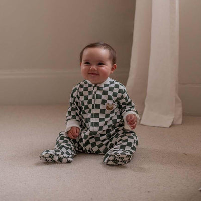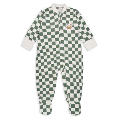 Christmas Baby Jersey Sleepsuit - Green Checkerboard