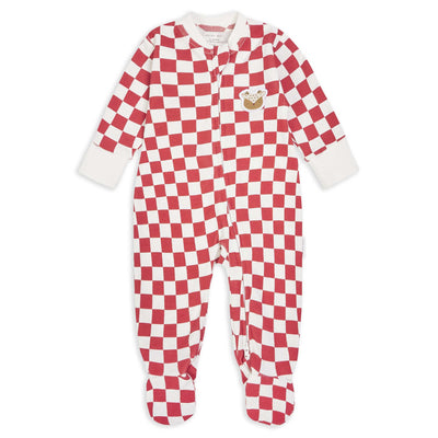 Christmas Baby Jersey Sleepsuit - Red Checkerboard