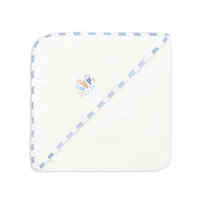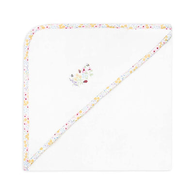 Our organic cotton terry towelling hooded towels are beautifully soft for the most delicate skin. Designed as part of our print collection, the hood is embroidered with our favourite friends. Perfect for bath times with little ones.