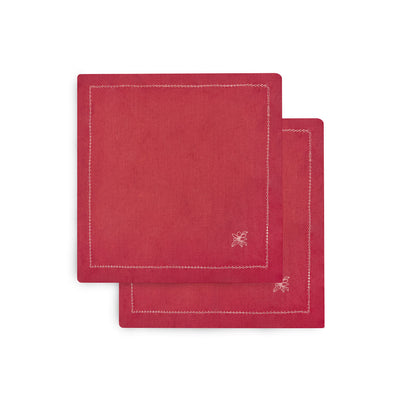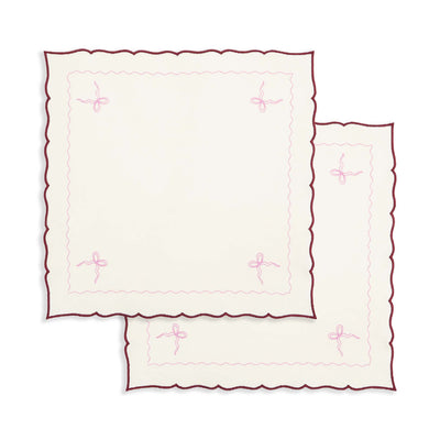 Embroidered Bow Napkins, Set of 2 - Burgundy