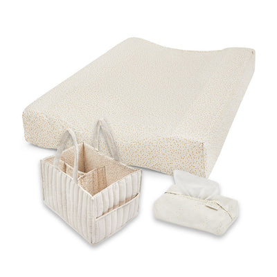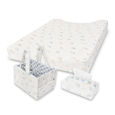 The new parent must-have baby changing essential. Pack with nappies, wipes, creams and a portable travel changing mat to be ready for any nappy changing moments. Our quilted organic cotton nappy organisers are designed to move with you around the house or on the go.