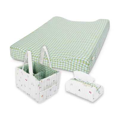 Whether at home or out on adventures, your nappy caddy should include essentials like nappies, baby wipes, nappy bags and creams. Our spacious nappy organiser can also store a host of other helpful items, including muslins for mopping up spills, a spare sleepsuit for messier situations, and a travel changing mat as a backup.
