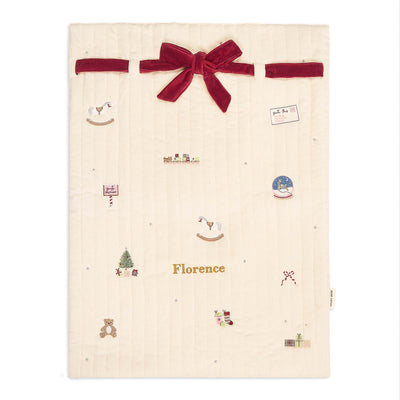 Make Christmas morning truly unforgettable with our Christmas Present Sacks – the perfect way to keep gifts safe, hidden, and ready to surprise excited little ones on the big day. Crafted from lightly quilted organic cotton with beautiful embroidered details and finished with a luxurious velvet tie. Our present sacks are designed to be cherished year after year and be a part of those special family festive traditions. Personalise your Present Sack with your little one’s name or family surname using our embroidery service.