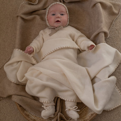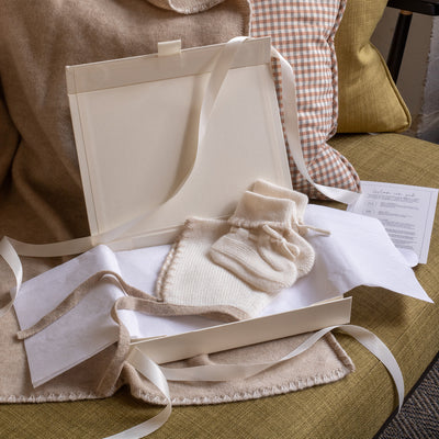 Cashmere Bonnet & Booties New Baby Gift Set - Natural