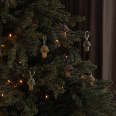 Paper Christmas Tree Decorations, Set of 6 - Mushrooms