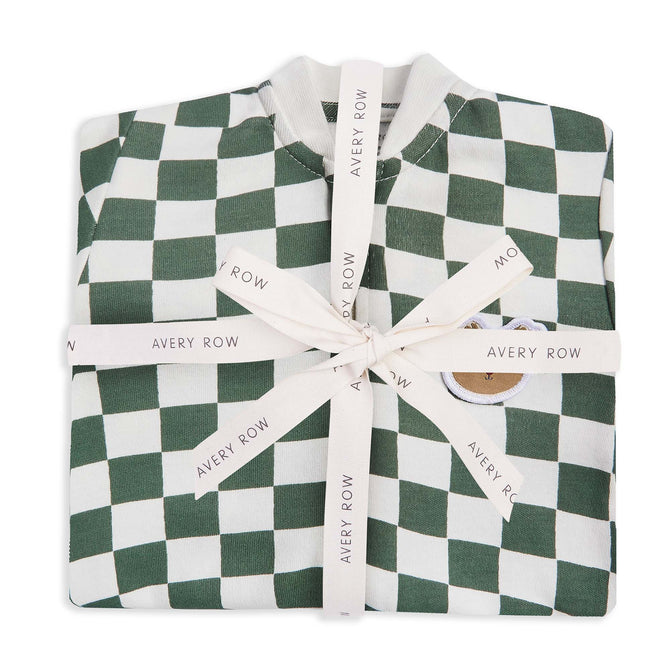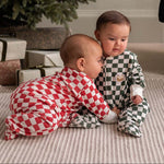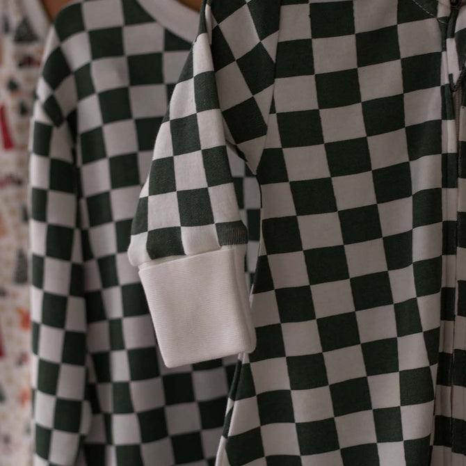 Christmas Baby Jersey Sleepsuit - Green Checkerboard
