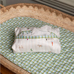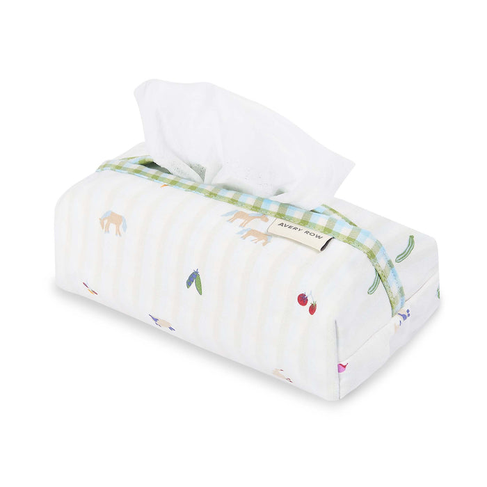 Keep your nursery changing station neat and stylish with our Organic Cotton Baby Wipes Cover. Made from organic cotton and dyes, this cover helps keep wipes fresh while ensuring your changing table looks beautiful. Designed in one of our signature Avery Row prints Little Farm with our woven Greenhouse Gingham fabric binding.