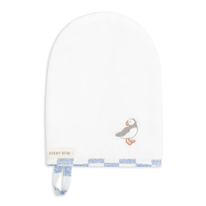 This organic cotton terry towelling bath mitt is super soft on your little one's skin.