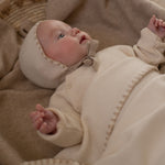 Wrap your newborn in luxury with our 100% cashmere blanket, bonnet and booties set, featuring a natural yarn base with a soft oatmeal trim and presented in a beautiful gift box. Our adorable baby bonnet and booties both feature a secure tie to keep your little one’s head and toes snug and covered, fitting newborns up to 3 months, and our sweet blanket is designed to swaddle, wrap and cover with softness and ease. A perfect keepsake, this cashmere set is designed to become a cherished part of your little one’s first months.