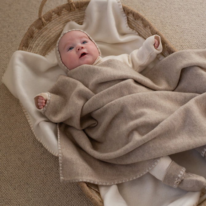 Carefully wrapped in tissue and placed in an elegant gift box, each blanket, bonnet and booties set comes with a care guide and a story of their creation, making the perfect gift to treasure for years to come.