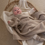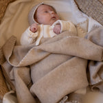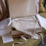 Wrap your newborn in luxury with our 100% cashmere blanket, featuring a soft oatmeal base with a natural tone trim and presented in a beautiful gift box. A perfect keepsake, this blanket is designed to become a cherished part of your little one’s first months.