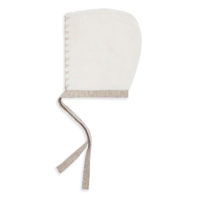 Treat your newborn to the luxury of our 100% cashmere bonnet, featuring a natural yarn base with a soft oatmeal trim and presented in a beautiful gift box. Our adorable baby bonnet features a secure tie to keep your little one’s head snug and covered, fitting newborns up to 3 months. A perfect keepsake, this bonnet is designed to become a cherished part of your little one’s first months.