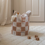 Add a touch of fun and practical storage to your little one’s room with our Checkerboard Baskets. The contemporary nude check design brings a playful pop of colour to any space. Made with paper wrapped around a sturdy wire frame, these baskets are both beautiful and durable. In the nursery, this medium basket is the perfect size to store blankets and swaddles. As they grow, use to organise toys, books or even as a laundry basket.