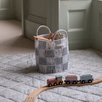 Add a touch of fun and practical storage to your little one’s room with our Checkerboard Baskets. The contemporary powder blue check design brings a playful pop of colour to any space. Made with paper wrapped around a sturdy wire frame, these baskets are both beautiful and durable. In the nursery, this medium basket is the perfect size to store blankets and swaddles. As they grow, use to organise toys, books or even as a laundry basket.