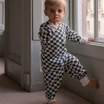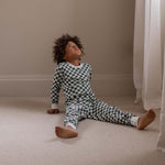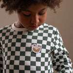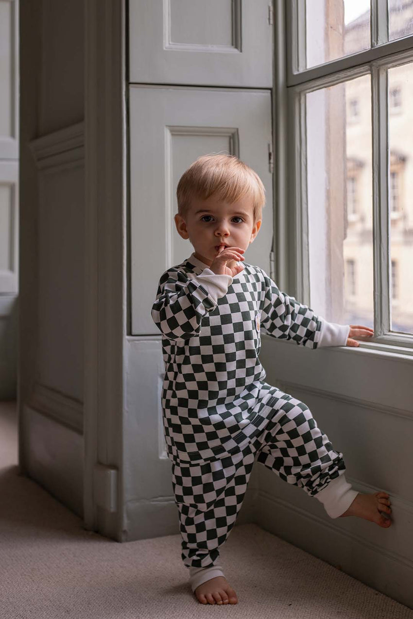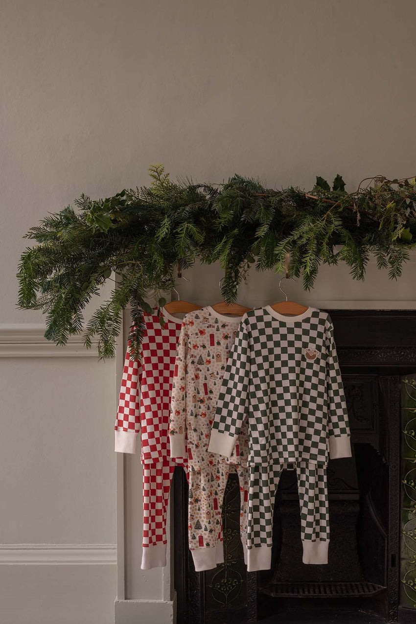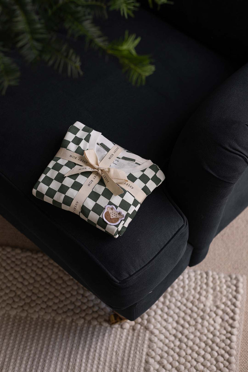 Snuggle your little one in cosy comfort with our Green Checkerboard Christmas Pyjamas, crafted from the softest 100% organic cotton jersey. Featuring playful festive green checkerboard pattern complemented by an embroidered sweet and sparkly Reindeer patch on the chest.