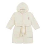 This organic cotton terry towelling hooded robe is beautifully soft for the most delicate skin. Designed as part of our Chamomile collection, the robe features an embroidered little Bunny on the front. Perfect for bath times or to use as a dressing gown.