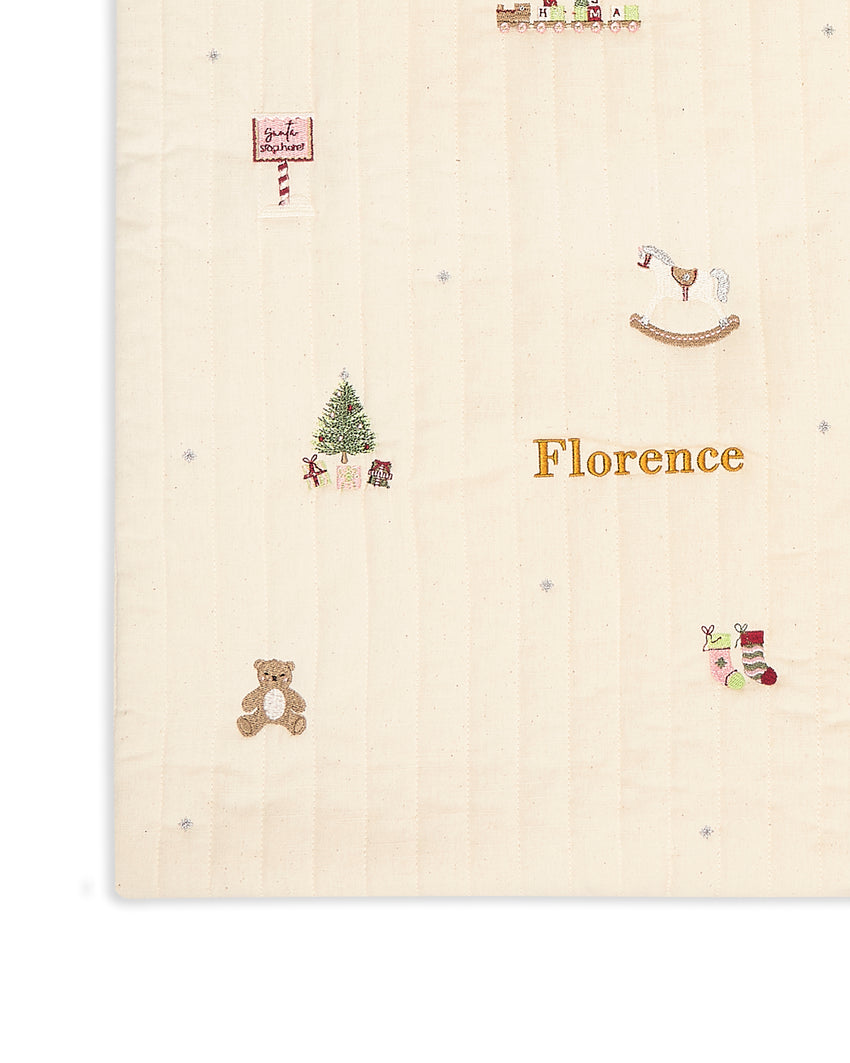 Make Christmas morning extra magical with our Christmas Present Sack – a timeless way to keep special gifts under the tree. Perfect for keeping presents tucked away until the big reveal, these reusable Christmas sacks are a festive tradition little ones will look forward to year after year. Crafted from lightly quilted organic cotton with embroidered details, each sack is finished with a luxurious velvet tie to keep treasures safe. Personalise your Present Sack with your little one’s name or family surname using our embroidery service.