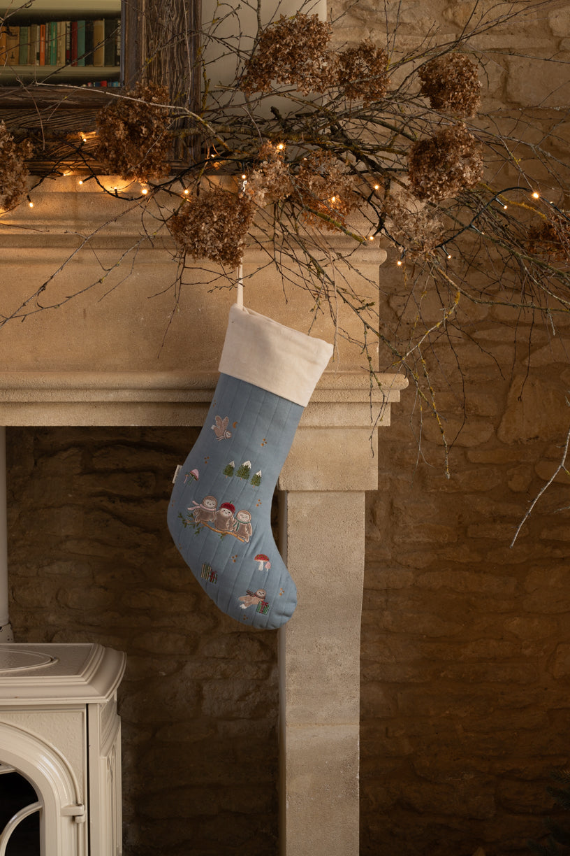 Part of our Winter Wilderness Collection, see our festive friends, each wrapped in a cosy scarf, as they prepare for the big day. Adorned with sparkly embroidered stars, this stocking is an investment piece little one's will treasure for years to come. Each year we tweak our Christmas designs with new themes so you know you are truly receiving a unique piece from a limited run. Each year we tweak our Christmas designs with new themes so you know you are truly receiving a unique piece from a limited run. Our Christmas stockings pair beautifully with our matching Advent Calendars, Present Sacks, and Tree Decorations.