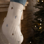 Part of our Winter Wilderness Collection, see our festive friends, each wrapped in a cosy scarf, as they prepare for the big day. Adorned with sparkly embroidered stars, this stocking is an investment piece little one's will treasure for years to come. Designed for parents, children or teenagers, this stocking is adorned with beautiful, embroidered colourful sprigs. Each year we tweak our Christmas designs with new themes so you know you are truly receiving a unique piece from a limited run. Our Christmas stockings pair beautifully with our matching Advent Calendars, Present Sacks, and Tree Decorations.