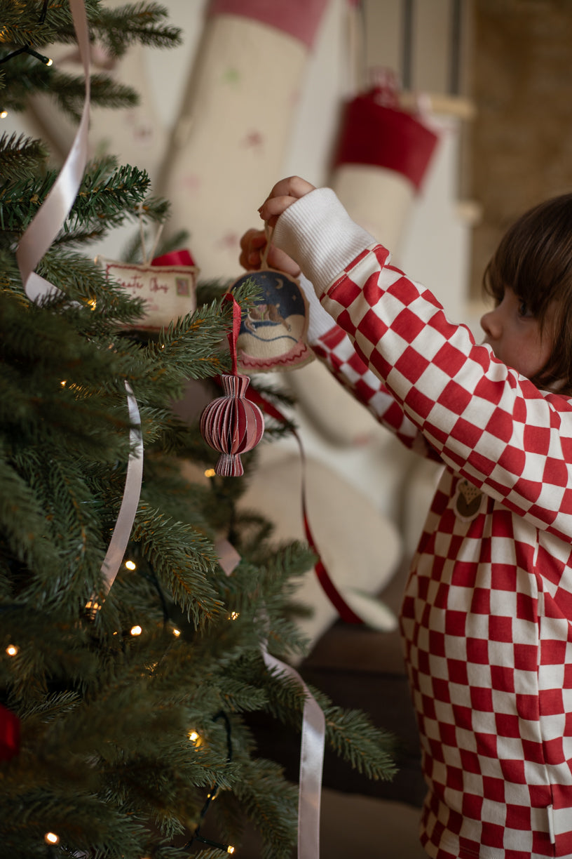 Part of our Letters To Santa Collection, follow the magical journey of a special letter as it travels to the North Pole, then from Santa’s workshop to gifts in his sleigh, ready to be unwrapped by little ones on Christmas morning. Each year we tweak our Christmas designs with new themes so you know you are truly receiving a unique piece from a limited run. Our Christmas tree ornaments pair beautifully with our Advent Calendars, Present Sacks, and Christmas Stockings.