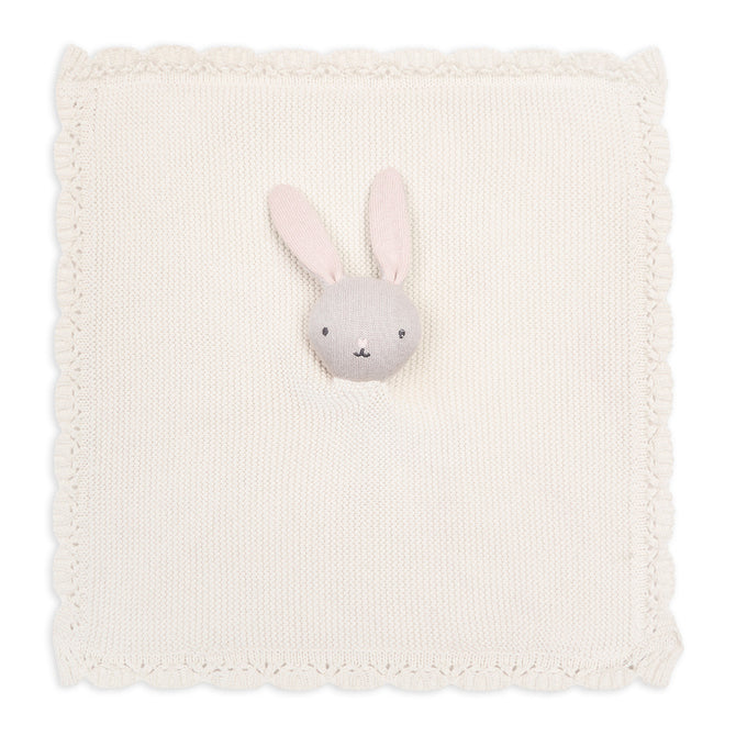 Meet your little one's first friend, our Cuddle Cloths. This sweet Blushing Bunny has been designed for little hands to grip and squish, and the scallop edge knitted cloth is perfect for snuggling.