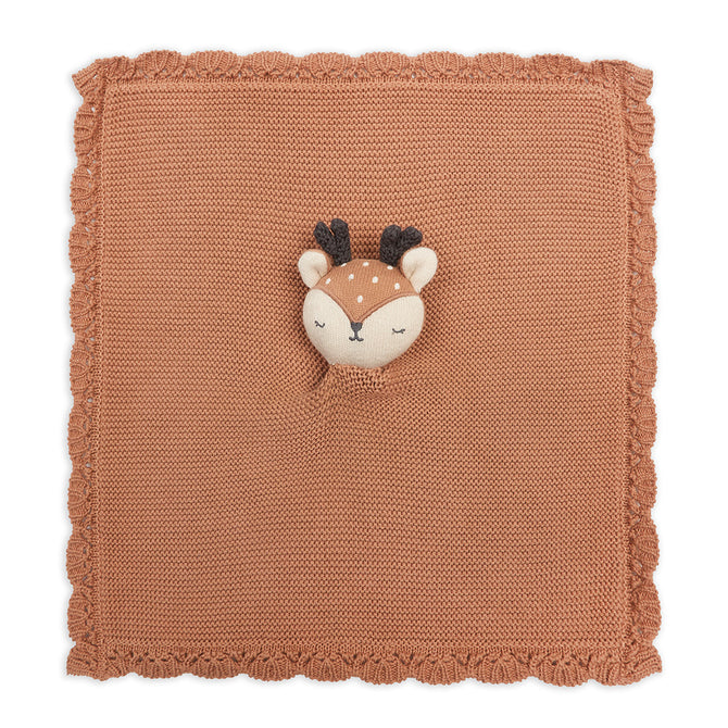 Meet your little one's first friend, our Cuddle Cloths. This sweet Dainty Deer has been designed for little hands to grip and squish, and the scallop edge knitted cloth is perfect for snuggling.