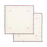 Dress your festive table in style with our Set of 2 Organic Cotton Christmas Napkins, the perfect finishing touch for your Christmas dinner. Each napkin comes in a soft off-white organic cotton, finished with a delicate burgundy trim and playful embroidered bow motifs for a seasonal yet timeless look.