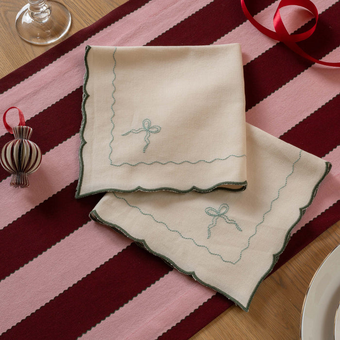 Embroidered Bow Napkins, Set of 2 - Dark Green