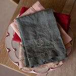 Embroidered Linen Napkins, Set of 2 - Pine Green
