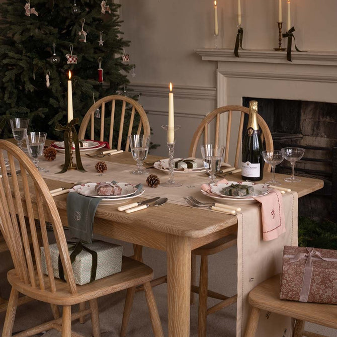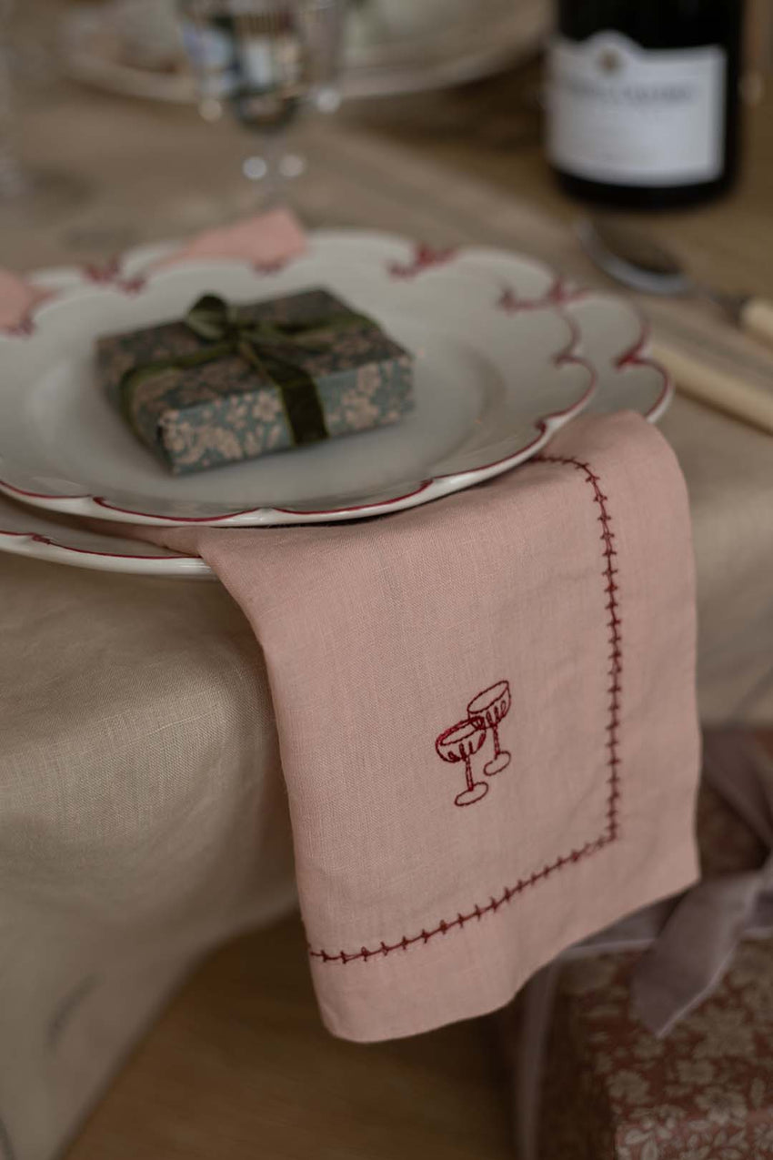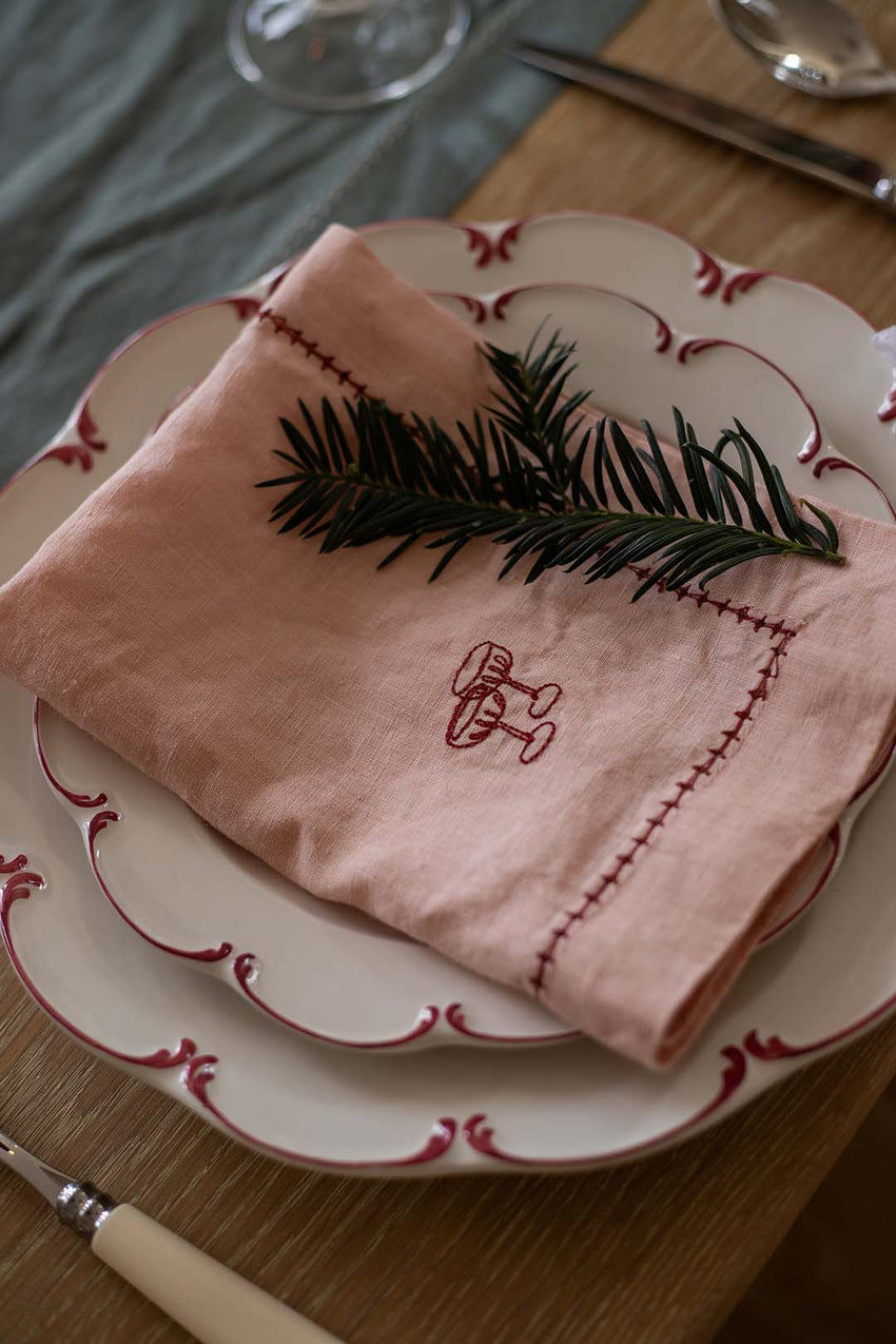 Dress your festive table in style with our Set of 2 Linen Christmas Napkins, the perfect finishing touch for your Christmas dinner. Each napkin comes in a plaster pink natural linen, finished with a delicate hemstitched trim and beautiful embroidered motifs for a seasonal yet timeless look.