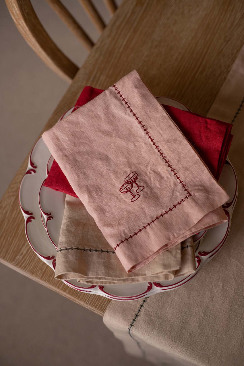 Embroidered Linen Napkins, Set of 2 - Plaster Pink
