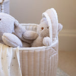This organic cotton quilted storage basket is the perfect way to keep your nursery or home clutter-free in a stylish, beautiful way.