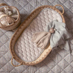 Our Maize Baby Changing basket is Crafted from natural maize with a jute trim, it adds a stylish touch to both the nursery and your home. We have paired this with our Nature Trail organic cotton liner which offers a soft, comfortable surface for your little one during changing time. The organic cotton percale has a light water resistant coating to delay liquids being absorbed into the soft cotton fabric.