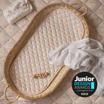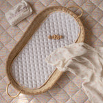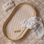Our Maize Baby Changing basket is Crafted from natural maize with a jute trim, it adds a stylish touch to both the nursery and your home. We have paired this with our Wildflower organic cotton liner which offers a soft, comfortable surface for your little one during changing time. The organic cotton percale has a light water resistant coating to delay liquids being absorbed into the soft cotton fabric.