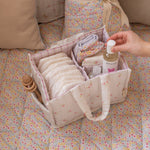 Keep all your baby changing essentials neatly organised with our quilted Nappy Caddy. Crafted from soft organic cotton sateen, this stylish and practical caddy is perfect for storing nappies, creams, wipes, and other nursery essentials, while its sturdy handles make it easy to move from room to room.