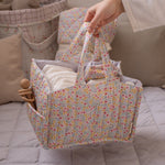 Keep all your baby changing essentials neatly organised with our quilted Nappy Caddy. Crafted from soft organic cotton sateen, this stylish and practical caddy is perfect for storing nappies, creams, wipes, and other nursery essentials, while its sturdy handles make it easy to move from room to room.