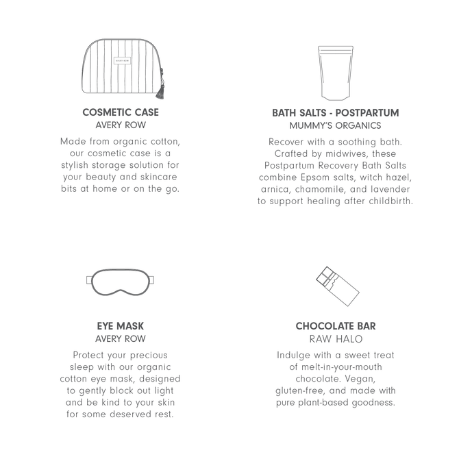 This thoughtfully curated selection is designed to support you through the postnatal journey, offering the gift of serenity, stillness and calm when you need it most.