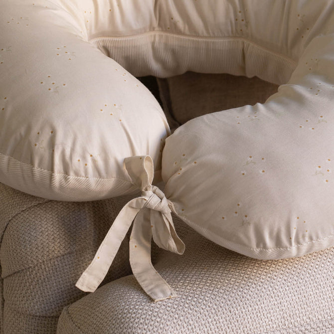 This organic cotton pillow cover protects your nursing pillow while adding a charming touch to your nursery - a simple way to keep feeding times comfortable and beautiful.