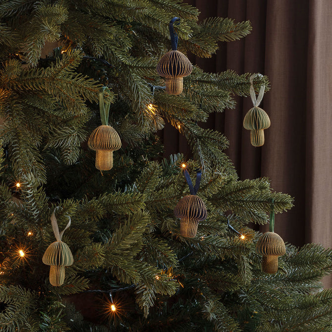 Paper Christmas Tree Decorations, Set of 6 - Mushrooms