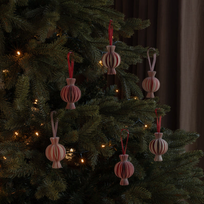Paper Christmas Tree Decorations, Set of 6 - Sweeties