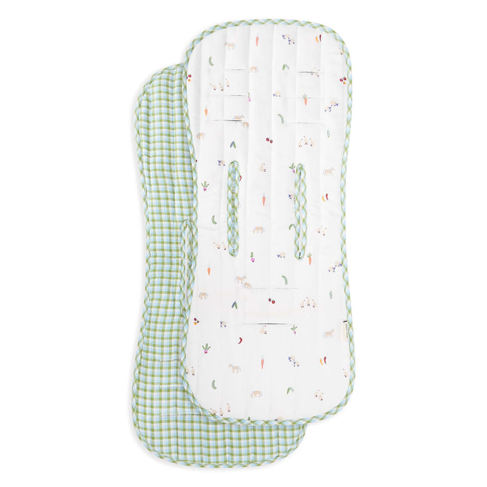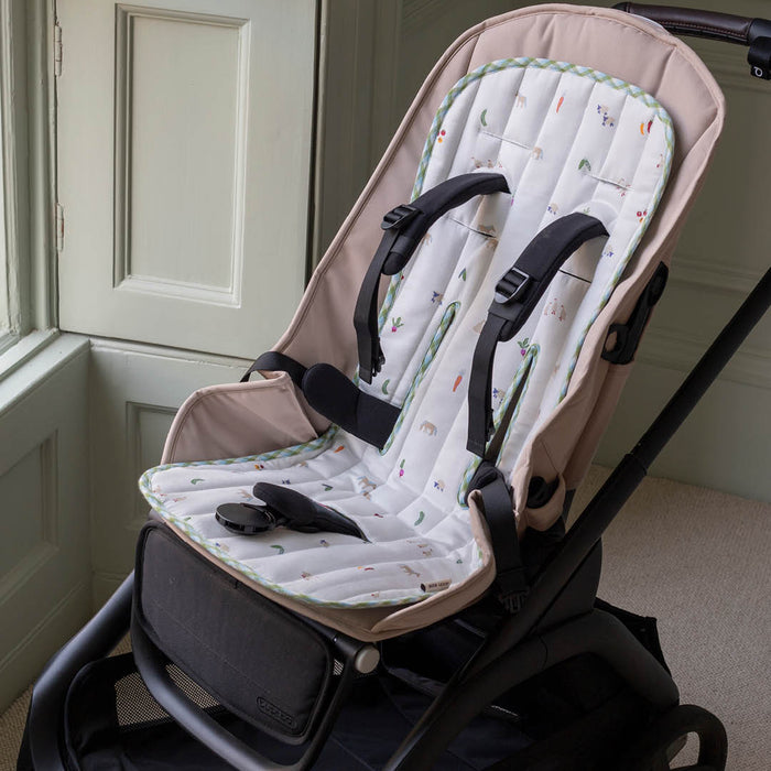 Keep your little one comfortable and your pram looking stylish with our Organic Cotton Reversible Pram Liner in our signature Little Farm print and woven Greenhouse Gingham. Designed to fit most pram models, it provides a soft, cushioned layer that’s perfect for everyday strolls while catching crumbs and keeping things clean.