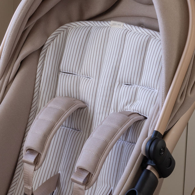 Our Pram liners are perfect for catching crumbs and creating a comfy, cosy, stylish pram. Designed to be a universal fit for all prams, our liners feature multiple slots to ensure a perfect fit for any model. These reversible pram liners are made from organic cotton sateen and organic dyes with a recycled polyester filling.