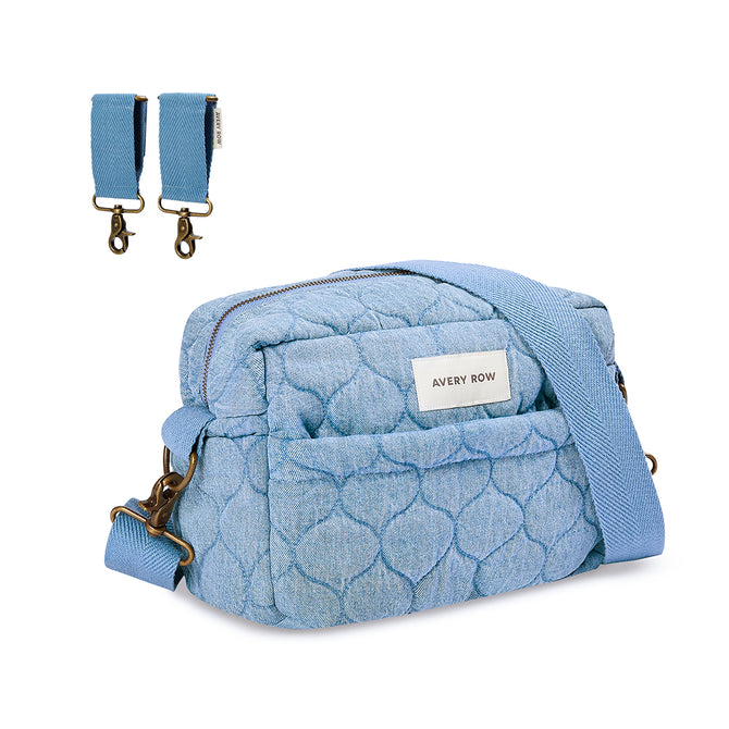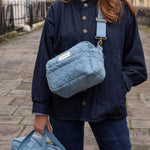 Meet our Pram Organiser Bag in Denim – the perfect mix of style, sustainability, and practical design for busy parents on the move. Designed for newborn strolls to toddler adventures and beyond. Made from 100% organic cotton denim and dyes with a soft quilted finish. The inner lining fabric features a water-resistant coating, making it easy to keep clean and ideal for everyday use. With an adjustable shoulder strap, this compact stroller organiser transitions effortlessly to a stylish crossbody bag.