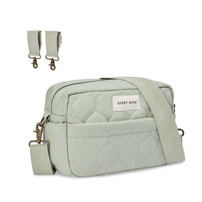 Meet our Pram Organiser Bag in Sage – the perfect mix of style, sustainability, and practical design for busy parents on the move. Designed for newborn strolls to toddler adventures and beyond. Made from 100% organic cotton and dyes with a soft quilted finish. The outer fabric and inner lining fabric features a water-resistant coating, making it easy to keep clean and ideal for everyday use. With an adjustable shoulder strap, this compact stroller organiser transitions effortlessly to a stylish crossbody bag.