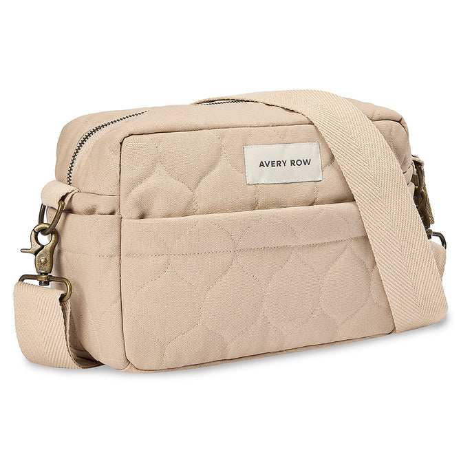 Meet our Pram Organiser Bag in Natural – the perfect mix of style, sustainability, and practical design for busy parents on the move. Designed for newborn strolls to toddler adventures and beyond. Made from 100% organic cotton and dyes with a soft quilted finish. The outer fabric and inner lining fabric features a water-resistant coating, making it easy to keep clean and ideal for everyday use. With an adjustable shoulder strap, this compact stroller organiser transitions effortlessly to a stylish crossbody bag.