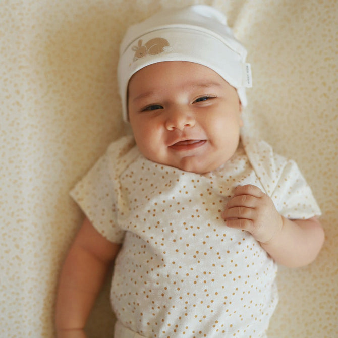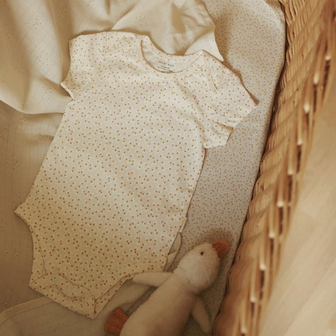 Get your little one ready for the day with our printed jersey bodysuit, featuring our delicate Daisy Meadow print as part of the Chamomile collection. Made from the softest 100% organic cotton jersey to be gentle on your babies skin. Our bodysuit is a classic shape with popper fastenings to make nappy changes easy, and an envelope neck for dressing. A stylish essential to your babies wardrobe, and makes the perfect gift.