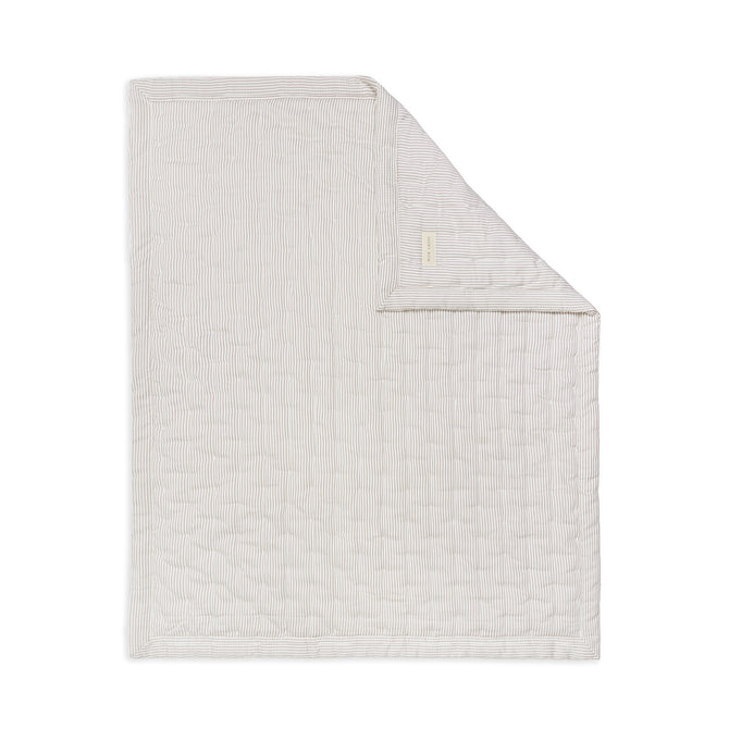 Snuggle up in our Stripe Cotbed Quilted Blanket, lovingly designed to drape over little ones' beds to keep them warm and cosy at night. Our Cotbed Quilt features a neutral woven stripe, that brings a clean and fresh feel to any bedroom. Our quilts are made from 100% organic cotton sateen and 100% recycled polyester filling and quilted with a running stitch, making the perfect eco-friendly addition to your child's bedding collection. Mix and match with any of our bedding sets and fitted sheets, or just use as an extra blanket for cosying up on the sofa.